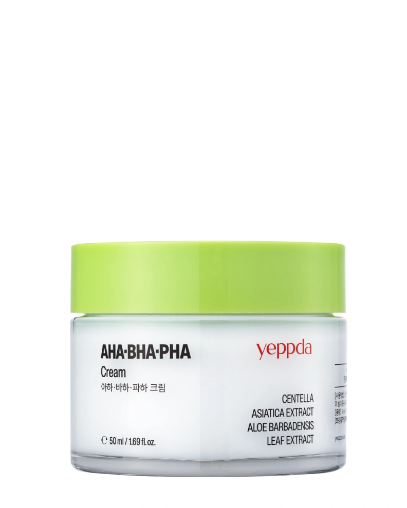 Crema de față regeneratoare cu efect calmant Yeppda AHA+BHA+PHA Cream hidratează și iluminează pielea. Crema reînnoiește pielea și normalizează activitatea glandelor sebacee, eliminând excesul de sebum, prevenind apariția punctelor negre și a comedoanelor închise. Combinația de acizi cu greutate moleculară diferită exfoliază ușor pielea, netezește tonusul și relieful. Produsul calmează, împrospătează și lasă pielea netedă și radiantă în mod natural. Îmbunătățește textura pielii, iluminează, are un efect de întinerire, declanșează procesele de regenerare, catifelează, îmbunătățește fermitatea și elasticitatea pielii.