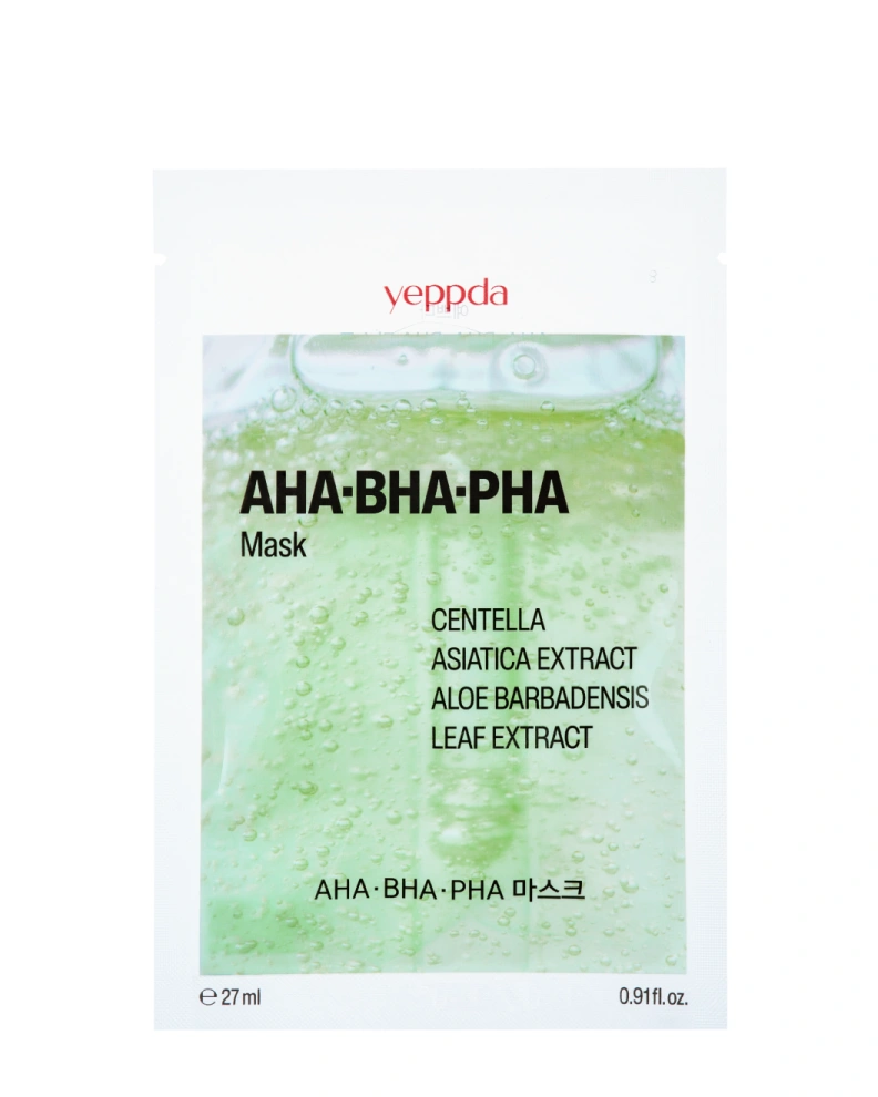 Masca din țesătură regeneratoare Yeppda AHA+ BHA+ PHA Mask cu efect calmant exfoliază ușor stratul keratinizat de celule, ajută la uniformizarea tonului și reliefului pielii, iluminează ușor, elimină excesul de sebum, previne apariția punctelor negre și a comedoanelor închise. Combinația de acizi cu diferite greutăți moleculare exfoliază delicat pielea, împrospătează, hidratează, conferă pielii netezime și strălucire naturală. Îmbunătățește textura pielii, are un efect de întinerire, declanșează procesele de regenerare, catifelare, îmbunătățește elasticitatea și fermitatea pielii.