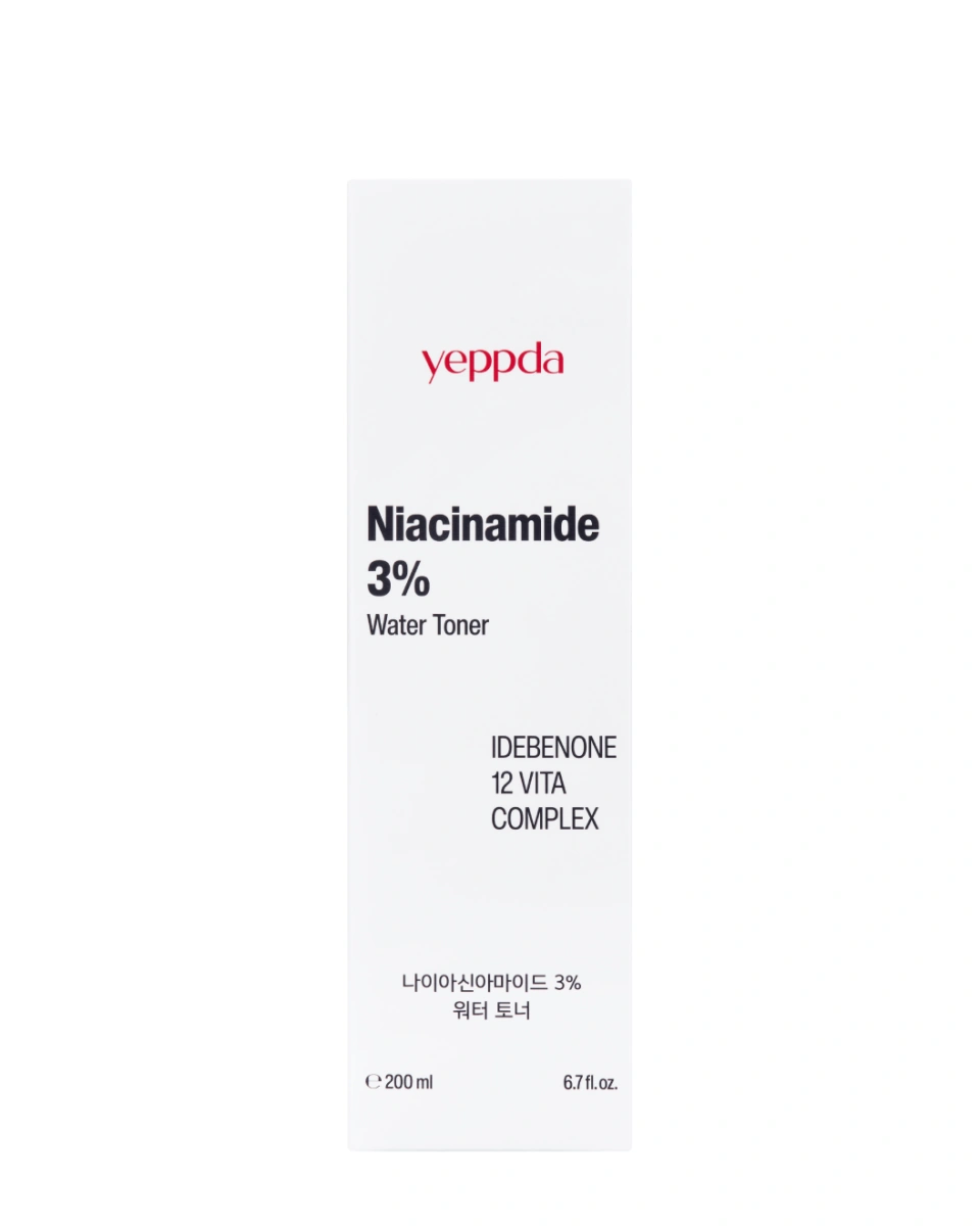 Tonerul iluminator Yeppda Niacinamide 3% Water Toner pe bază de apă are un efect întineritor și antioxidant, elimină tenul tern, împrospătează, conferă pielii strălucire, reduce inflamațiile, ajută la îngustarea porilor. Tonerul elimină descuamarea, roșeața și iritația, întărește vasele de sânge, iluminează pigmentarea și post-acneea, saturează pielea cu vitamine, întărește bariera de protecție, previne distrugerea fibrelor de colagen din piele, stimulează procesele de regenerare și restaurare. Conține un complex de 12 vitamine și are un efect revitalizant general asupra pielii.