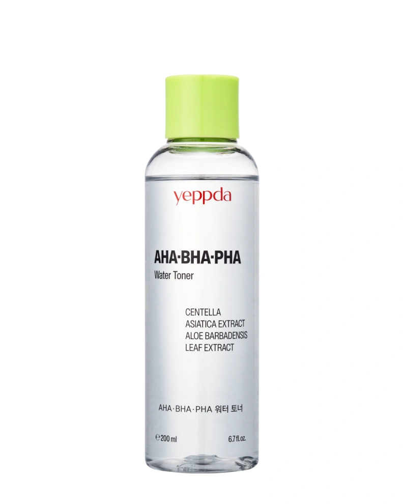 Tonerul facial regenerator Yeppda AHA-BHA-PHA Water Toner pe bază de acizi are un efect exfoliant și hidratant. Formula calmantă a tonerului conține o combinație de acizi cu diferite greutăți moleculare, care exfoliază ușor pielea, uniformizează tonul și textura pielii, elimină punctele negre și previn apariția comedoanelor închise, contribuie la hidratare. Tonerul calmează, împrospătează, lasă pielea netedă și radiantă în mod natural. Îmbunătățește textura pielii, înmoaie, îmbunătățește fermitatea și elasticitatea pielii.